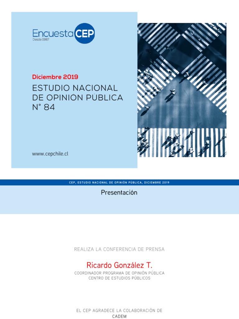 Encuesta cep 2019. 12 hours agoEncuesta CEP. Estudio Nacional de Opinión Pública N83 Mayo 2019 Centro de Estudios Públicos Base de datos disponible. 11 hours agoEncuesta CEP.