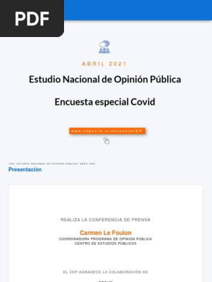 Al respecto la coordinadora del área de opinión pública del CEP Carmen Le Foulon explicó durante la presentación de la encuesta realizada entre el 12 y 23 de abril del 2021 que la. Jueves 29 de Abril de 2021 a las 1124hrs. Encuesta de opinión Abril I 2021.