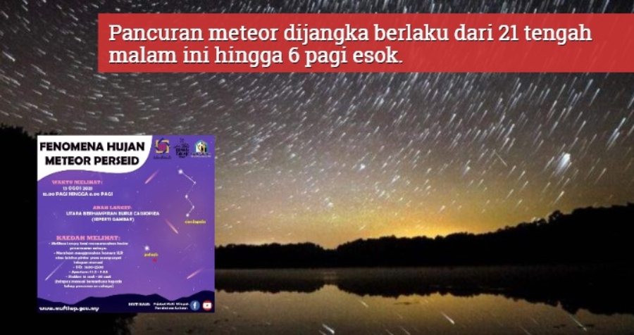 Orang ramai dijangka akan dapat melihat fenomena angkasa yang dikenali sebagai Hujan Meteor Perseids yang berlaku setiap tahun pada 17 Julai hingga 24 Ogos dan kemuncaknya dijangka akan berlaku lewat malam 12 Ogos hingga awal pagi 13 Ogos 2021. Hujan Meteor Perseid aktif sejak tanggal 17 Juli hingga 24.